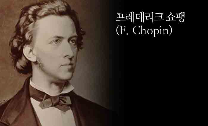 프레데리크 프랑수아 쇼팽(Frédéric François Chopin, 1810년 3월 1일 ~ 1849년 10월 17일)은 폴란드 태생의 작곡가이자 피아니스트로, 낭만주의 음악을 대표하는 인물이다. 그는 피아노 음악에 혁신적인 변화를 가져왔으며, 그의 작품들은 오늘날까지도 전 세계적으로 사랑받고 있다. 쇼팽은 피아노를 위한 독창적인 작품을 남겼으며, 그의 음악은 서정적이고 섬세한 감성, 우아한 기교, 그리고 깊은 정서적 표현이 특징이다. 또한, 그는 폴란드 민속 음악과 클래식 음악을 결합하여 자신만의 독특한 음악 세계를 구축했다.